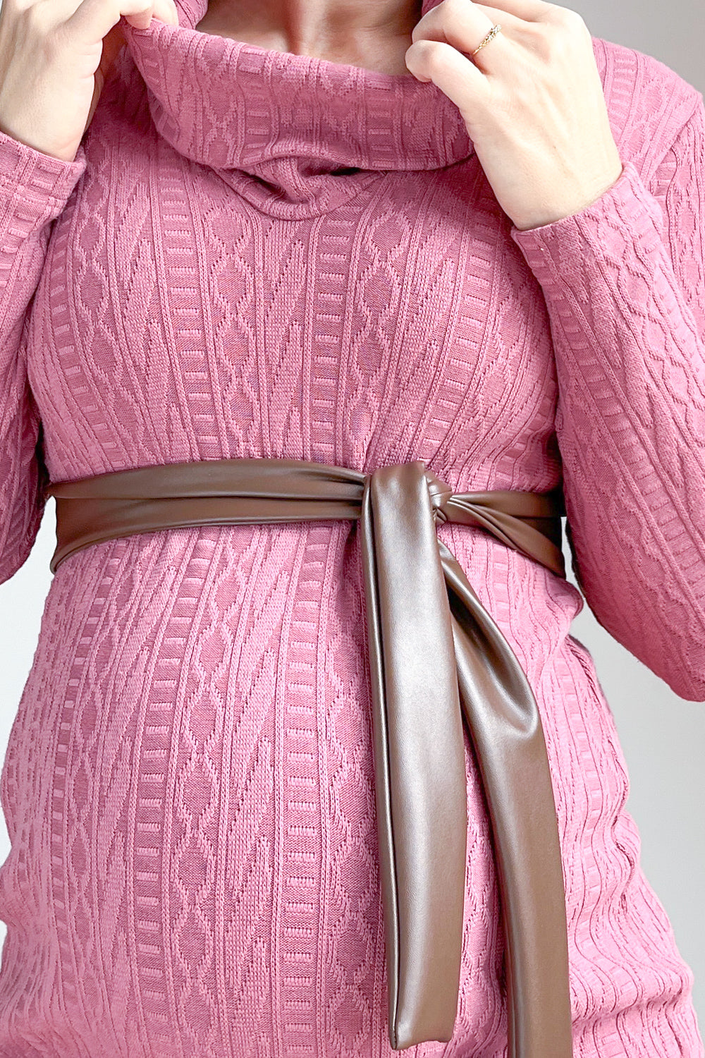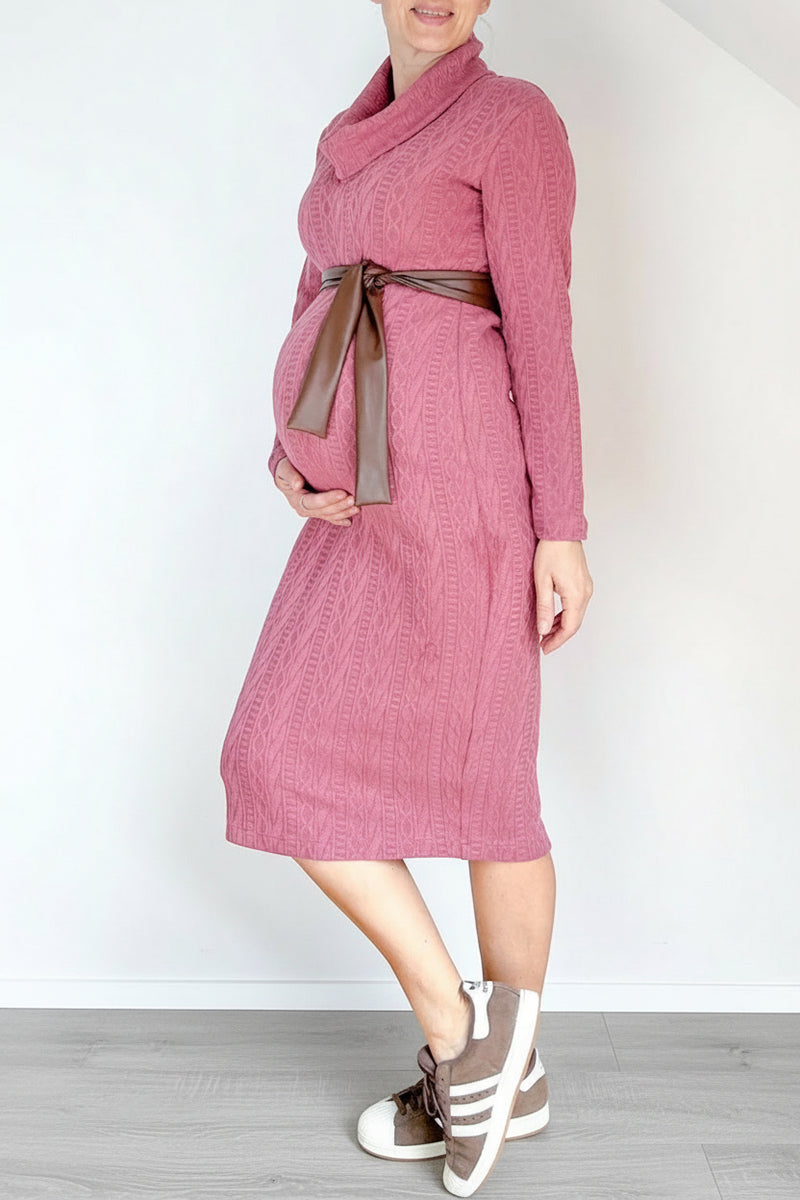 Nosečniška obleka s pasom - oprijeta - topla