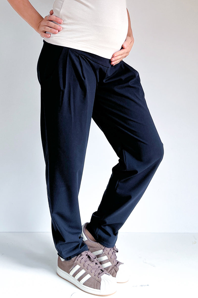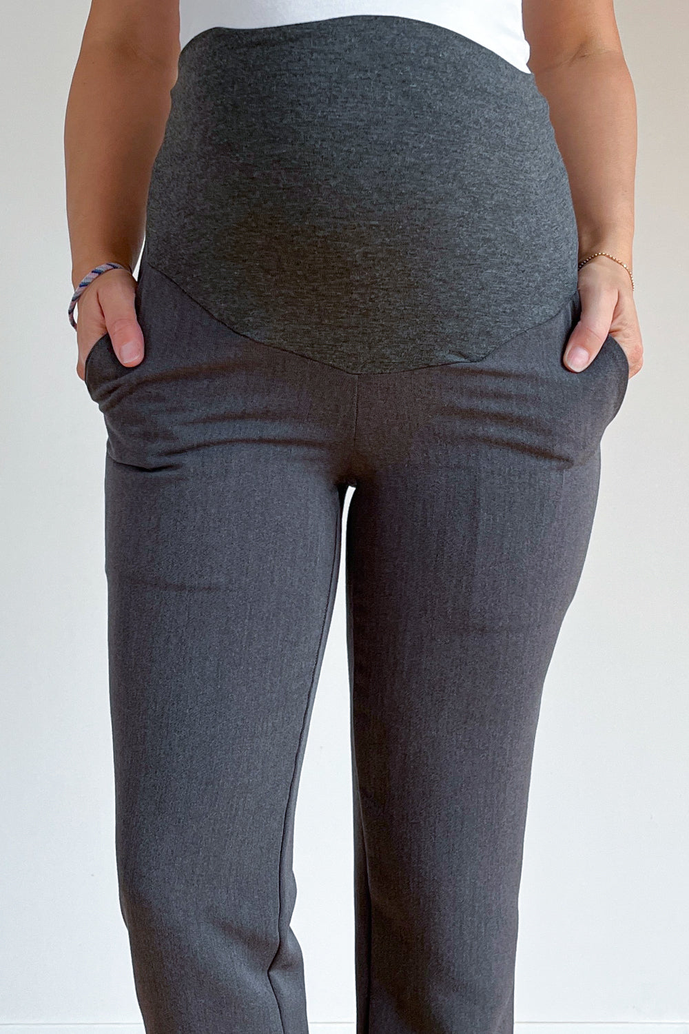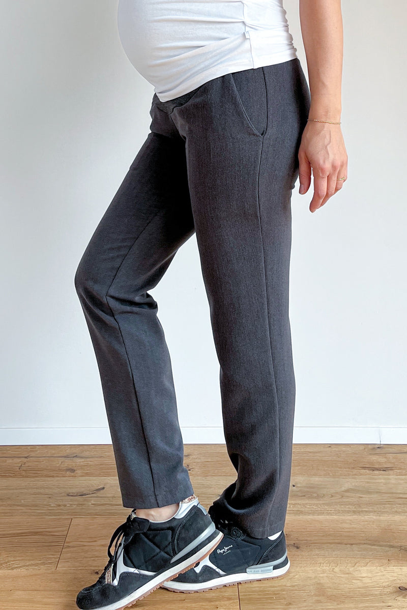 Športno elegantne nosečniške hlače- raven kroj - sive PUNTA ROMA