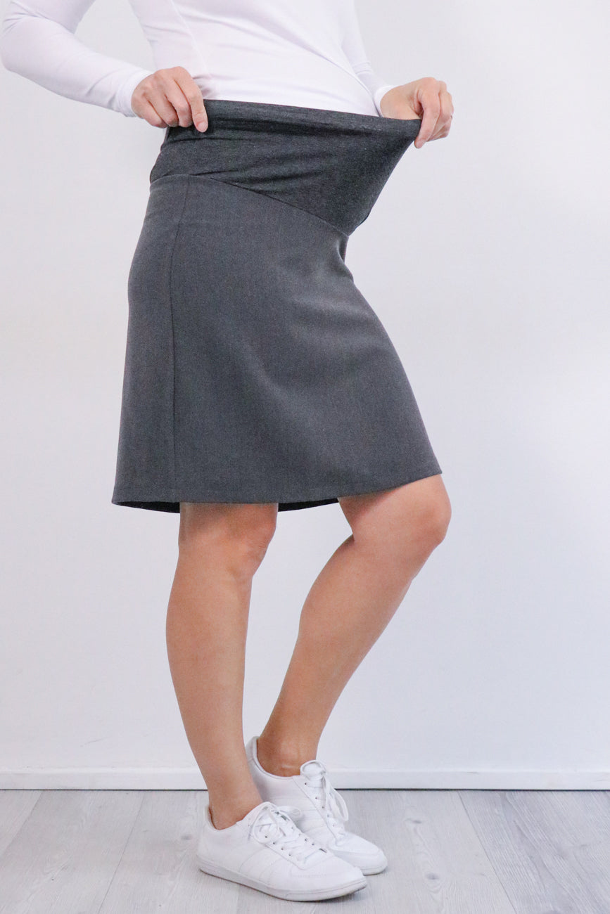 Nosečniško krilo je izdelano iz elegantnega, malo elastičnega in mehkega materiala. Je ravnega kroja in sega do nad koleni. Ima všit pas iz mehkega in elastičenga bombaža, ki raste s trebuščkom. Nosečniško krilo je primerno za v službo, posebno priložnost ali vsakdanje opravke. Lepo se kombinira na elegatne čevlje ali superge.