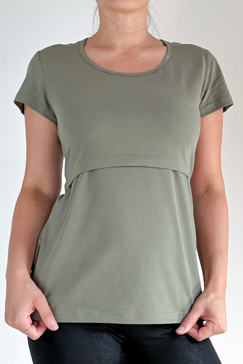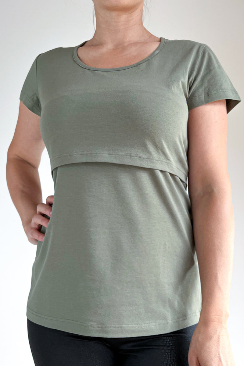 Majica za dojenje - olivno zelena - kratek rokav